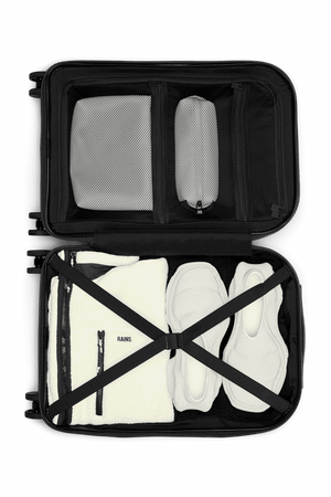 Texel Cabin Trolley is a waterproof 4-wheel suitcase, arriving in carry-on dimensions* The waterproof bi-fold design offers two spacious compartments with elastic crossband and mesh closures. The case is accessed by a full-silhouette zip for easy packing. Texel Cabin Trolley is made of durable polycarbonate, so belongings remain safe throughout transit. Securing the suitcase is simple through an integrated TSA approved lock. Transportation is equally effortless with a comfort telescopic handle** and four multi-directional wheels.