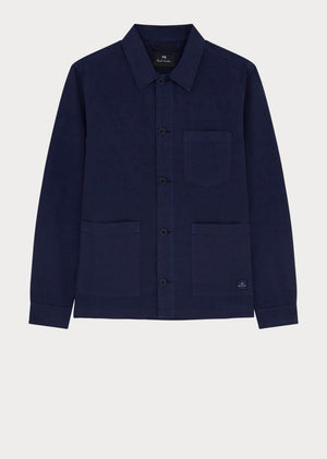 Paul Smith Casual Fit Button Through Overshirt Jacket in Navy Blue. A classic and stylish piece executed in a mix of cotton and linen for comfortable and breathability for the Spring/Summer season.