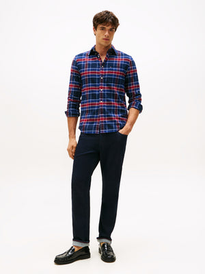 The Tommy Hilfiger Hero Flannel Tartan Shirt in Navy combines classic style with premium comfort. Crafted from soft flannel, this casual shirt features a distinctive large check pattern in navy, red, and blue tones. Designed with a button-down collar and detailed with the iconic Tommy Hilfiger flag logo on the chest, it offers a polished yet relaxed look. Ideal for layering or wearing solo, this shirt delivers warmth and durability while maintaining a sharp, versatile appearance suitable for various casual occasions.HERO FLANNEL TARTN C 0MS