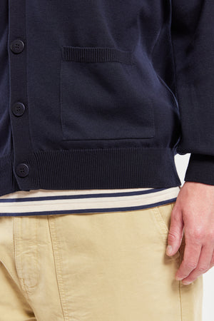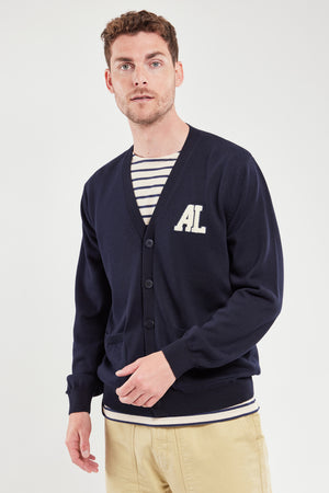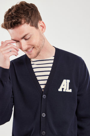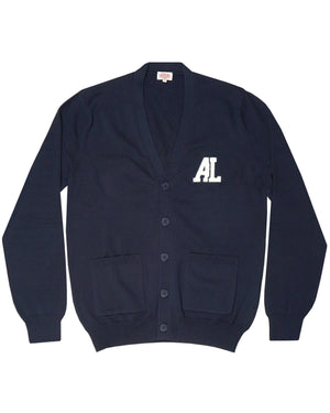 The AL Cardigan is made using 100% cotton in Navy. A collegiate style embossed with the AL logo on the chest. A stand out piece from this SS24 collection. Expertly crafted from 100% cotton, this cardigan combines comfort with style. The collegiate design, complete with an embossed AL logo on the chest, makes it a standout piece from the SS24 collection.