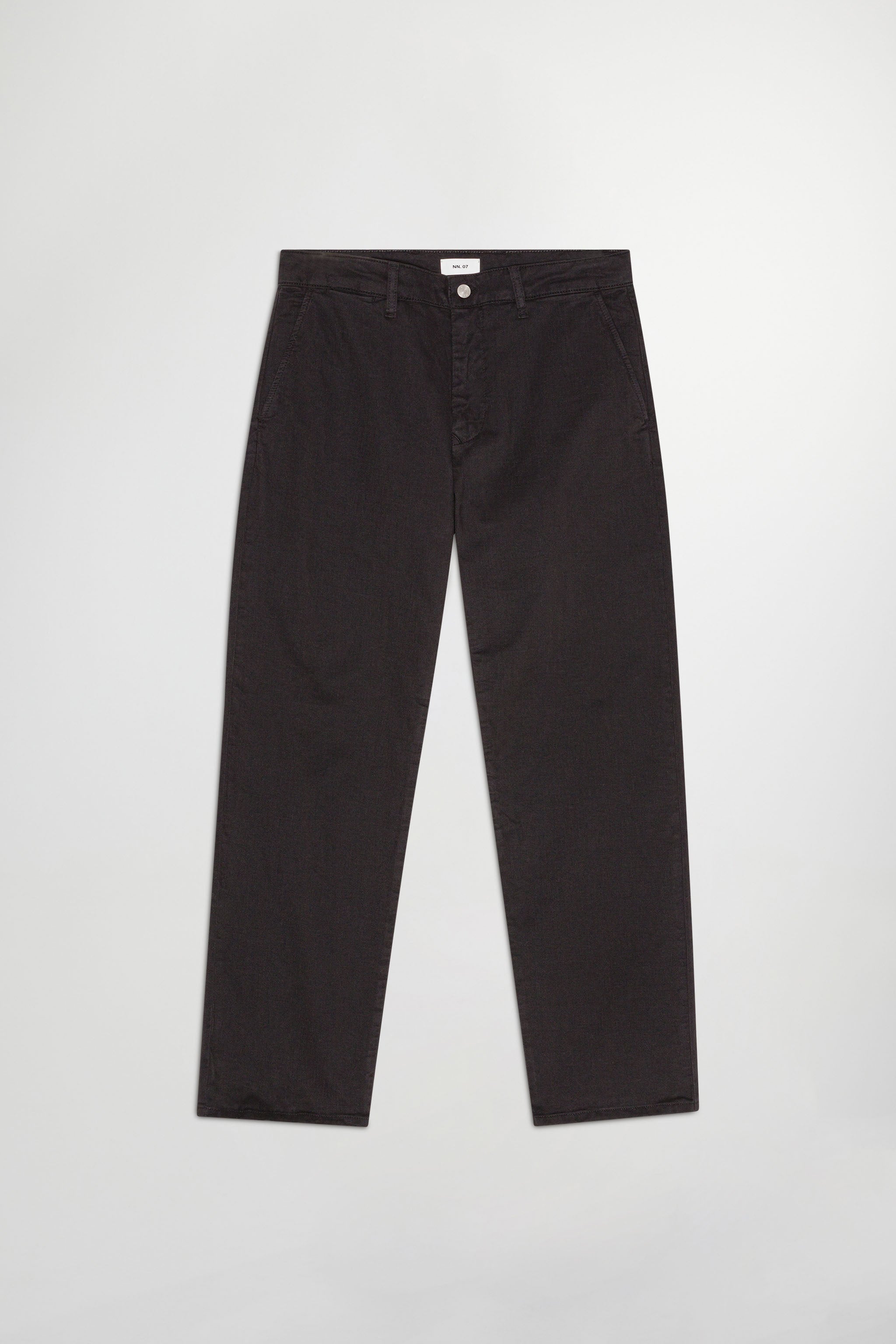 These NN07 Aden 1923 chinos in black offer a perfect balance of style and functionality, crafted from a 305 g/m² organic cotton blend that feels soft against the skin with a subtle peachy texture. The regular fit and straight leg design provide a timeless silhouette suitable for a variety of occasions, while the added comfort stretch ensures ease of movement throughout the day. Durable yet breathable, they support sustainable fashion choices without compromising on comfort or elegance, making them an essential wardrobe staple for the modern man.