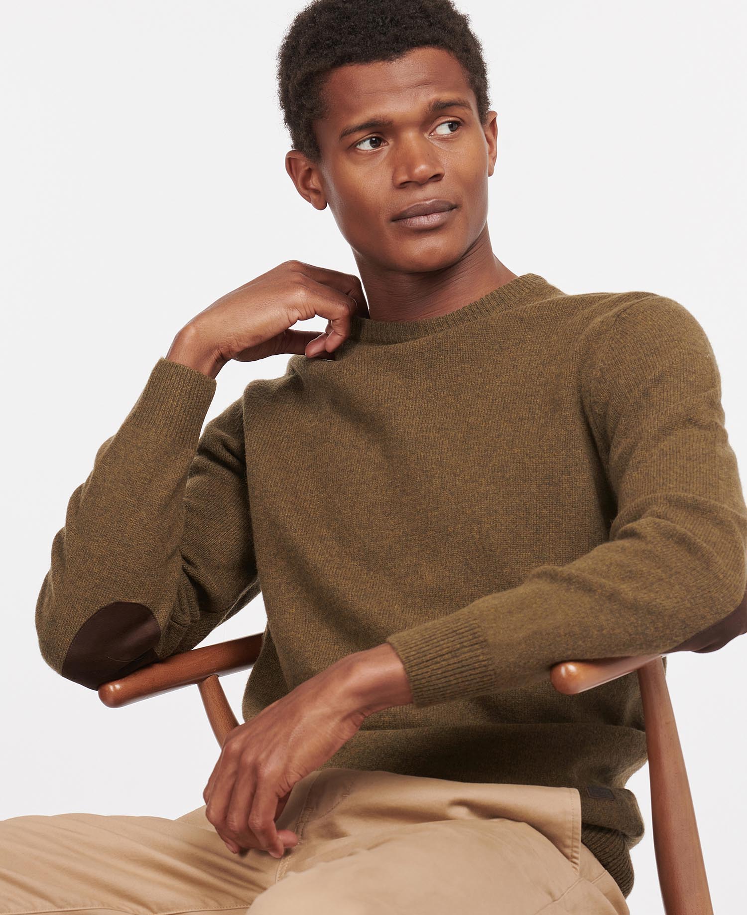 Crafted from 100% wool, this Barbour sweatshirt features leather elbow patches for a nod to country life. This garment is detailed with a crew neck and long sleeves, making it perfect for layering over shirts.
