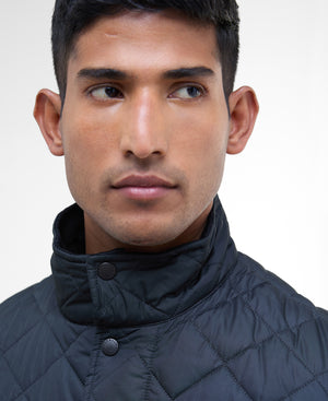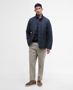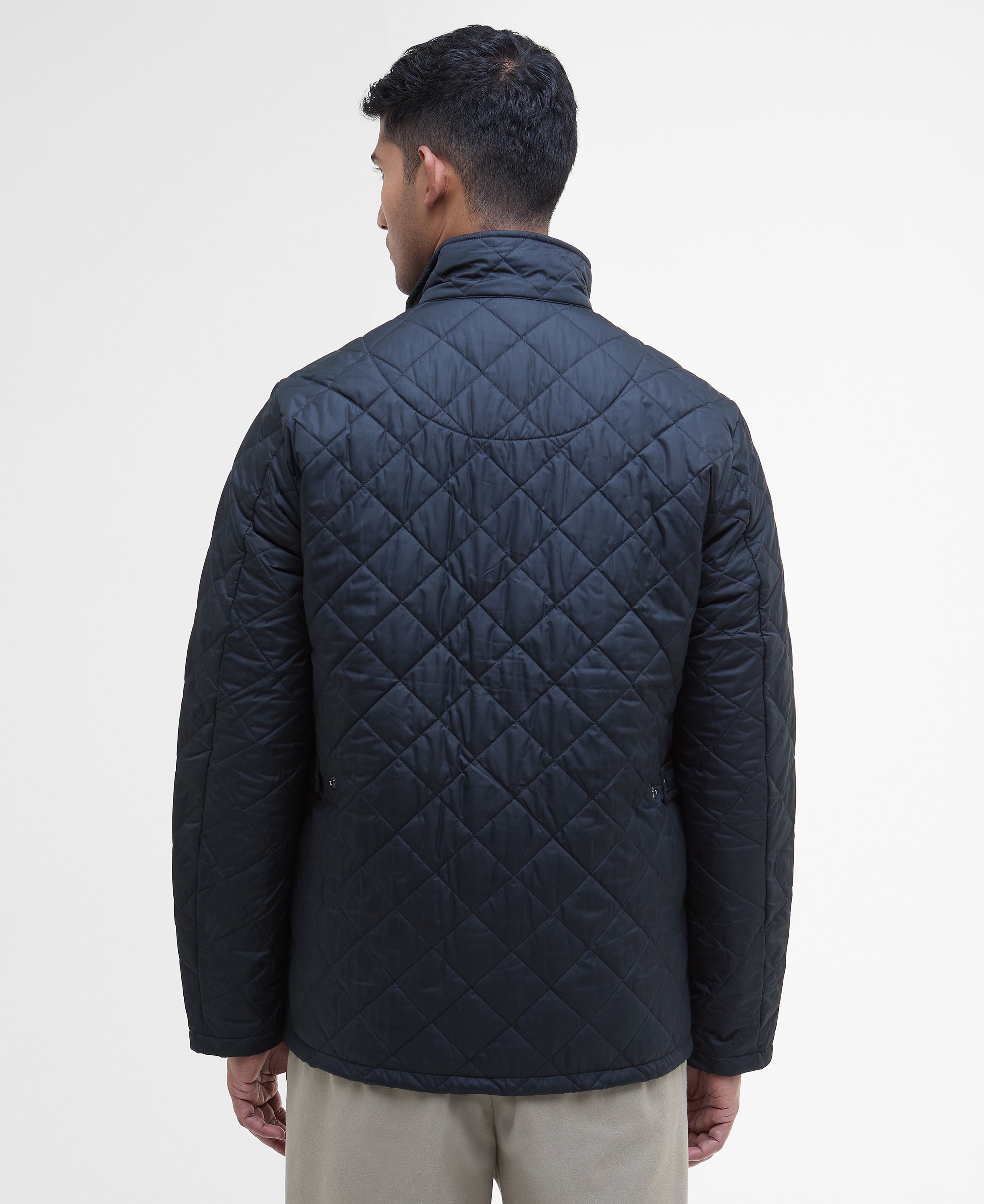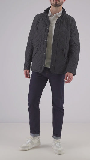 The Powell jacket combines outdoor functionality with refined style, making it a perennial favourite. This quilted Chelsea-style jacket features a 50g wadding outer and a fleece lining that ensures exceptional warmth. Its two-way zip with a Barbour-branded ring puller extends to a corduroy-lined funnel neck, secured by sturdy stud fastenings for enhanced protection against wind and rain. Designed with a slimmer, modern silhouette, it includes adjustable back waist tabs for a tailored fit perfect for winter layering. Practical front pockets and a zipped compartment provide secure storage, while synthetic leather trims and tonal Barbour embroidery add subtle sophistication.