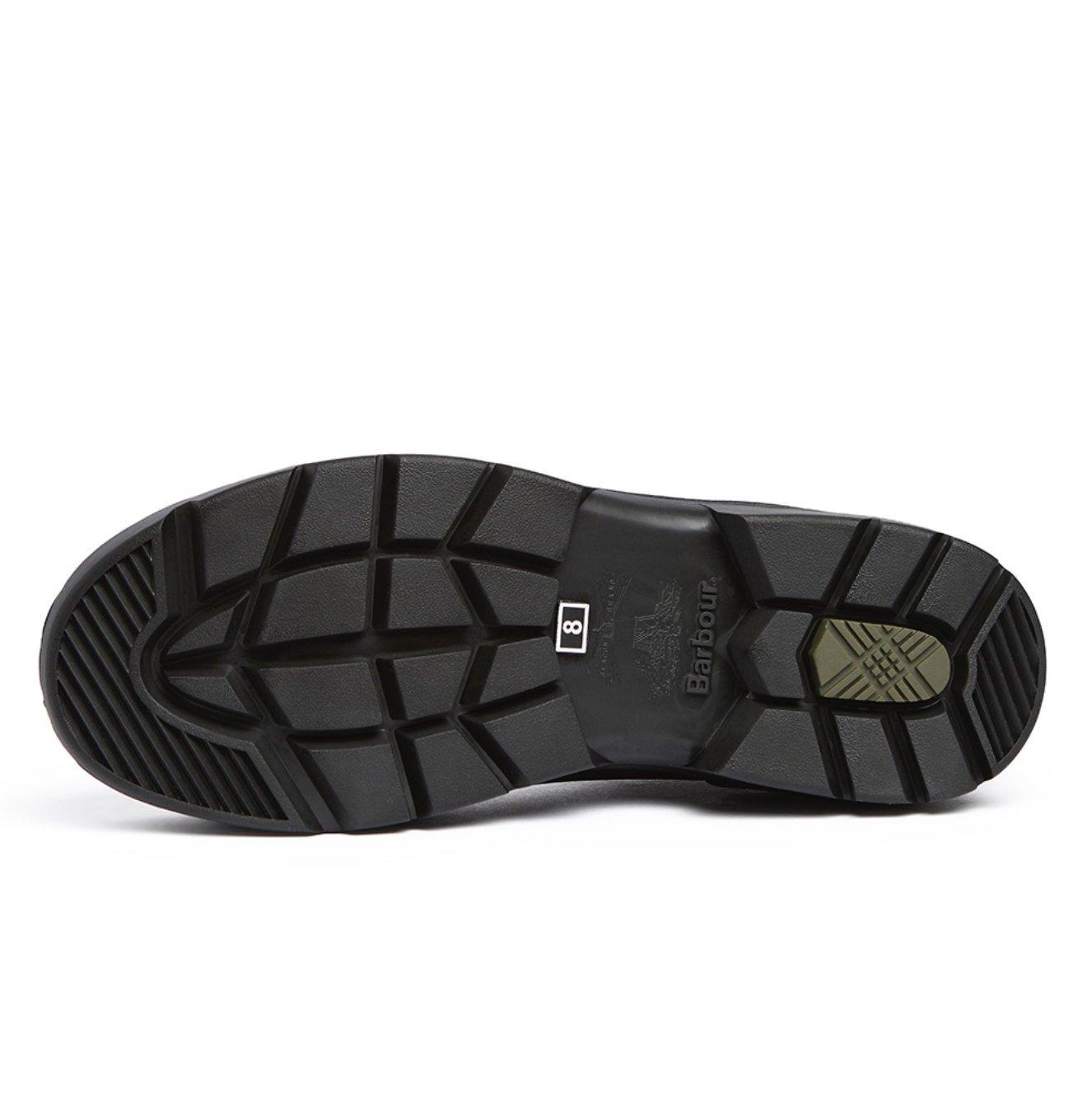 Barbour wellington on ridge sole unit with sidewall Barbour branding and pull tabs to front and back.