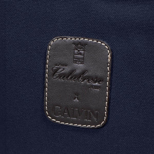 A true example of Italian Mastery in Craftsmanship. Experience the epitome of sophistication with our men's blue canvas holdall bag, a collaboration between GALVIN and Calabrese. Meticulously handcrafted in Italy, this bag reflects the renowned Calabrese Italian flair, premium leather trimming resulting in a superior luxury craftsmanship. The holdall features metal hardware, leather handles for a touch of luxury, and two internal zippered compartments to keep your valuables secure. It also boasts two outer zipper compartments for added convenience. Complete with a leather Calabrese branded patch, this holdall combines the durability of canvas with the timeless appeal of leather. Indulge in style and functionality with this GALVIN x CALABRESE.