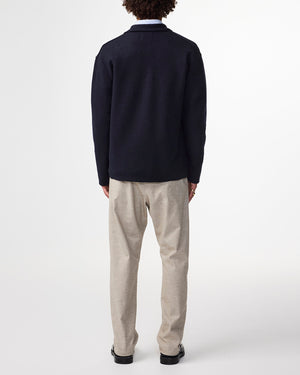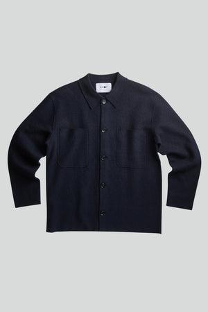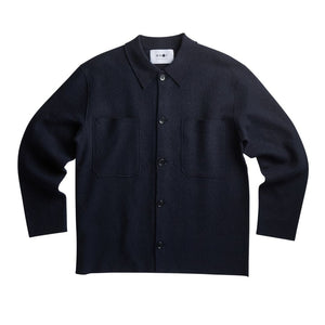 The NN07 Jonas Hybrid 100% Merino Knit in Navy is a versatile casual overshirt expertly crafted from soft, lightweight boiled Merino wool, providing natural breathability and comfort. It features a classic shirting collar and stylish raw edges that give a modern, relaxed look. The piece is finished with durable NN.07 logo buttons, combining functional design with understated branding. Ideal for layering or wearing alone, this overshirt offers exceptional warmth and a refined texture, making it a sophisticated addition to any wardrobe seeking both style and practicality.