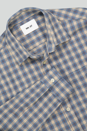 The NN07 Deon Check Shirt in blue offers a refined take on casualwear with its regular fit and premium craftsmanship. Made from soft, medium-weight yarn-dyed cotton flannel twill, it balances warmth and breathability, making it suitable for all-day wear. Thoughtfully designed, it features a single patch pocket for practical style and a curved hemline that enhances layering versatility. The slightly off-the-shoulder sleeves provide superior comfort and ease of movement, ensuring this shirt adapts seamlessly to an active lifestyle. Ideal for professional and casual settings, the Deon Check Shirt delivers both comfort and understated sophistication.