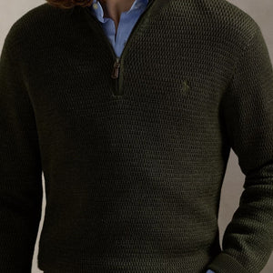 This mockneck jumper expertly blends fine-gauge worsted wool with a sophisticated textured-knit design, ensuring both warmth and a refined appearance. Crafted to offer superior comfort and durability, it features our signature embroidered Pony, adding a subtle yet distinctive touch of style. Ideal for layering or wearing alone, this jumper delivers a timeless look suited for both casual and professional settings. Its high-quality materials provide excellent insulation while maintaining breathability, making it a versatile addition to any wardrobe.