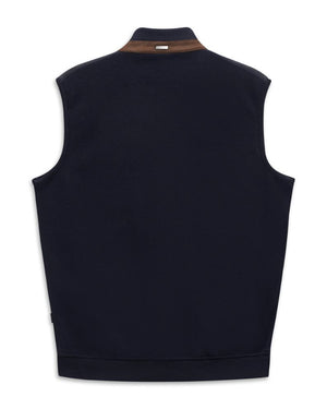 This men's navy blue waistcoat offers a refined knitted texture combining 80% cotton and 20% polyester for durability and comfort. Designed for easy care, it requires gentle washing at temperatures up to 30°C, while avoiding chlorine bleach to maintain fabric integrity. Ironing should be done cautiously at low temperatures, and neither tumble drying nor dry cleaning is recommended to preserve the garment’s shape and color. Ideal for layering, this waistcoat blends classic style with practical maintenance suited for the modern wardrobe.
