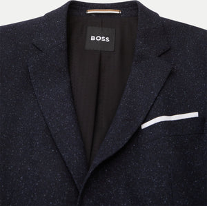 The Boss 'Hutson' Blazer in blue is a versatile addition to any wardrobe. This expertly tailored blazer features a 2-button closure and a textured appearance, exuding sophistication and style. With 2 front pockets, 1 chest pocket, and a double vent, this blazer combines functionality and fashion for a polished look.