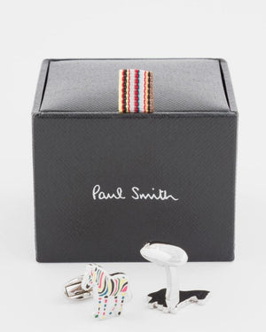 Paul Smith Zebra Cufflink in the is made from 70% Copper 30% Zinc and is 100% Enamel plated.Cyclist Stripe Colour M1A-CUFF-AZEBRA MULTI MEN CUFFLINK ZEBRA Crafted with a carefully balanced blend of 70% copper and 30% zinc, this 100% enamel-plated Paul Smith Zebra Cufflink is the perfect blend of beauty and durability.