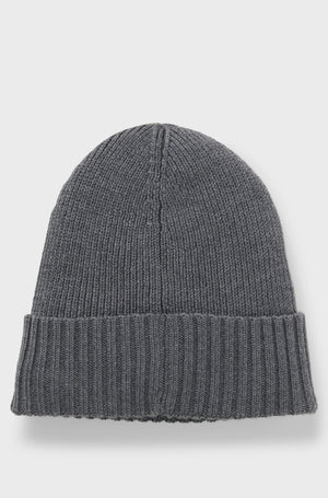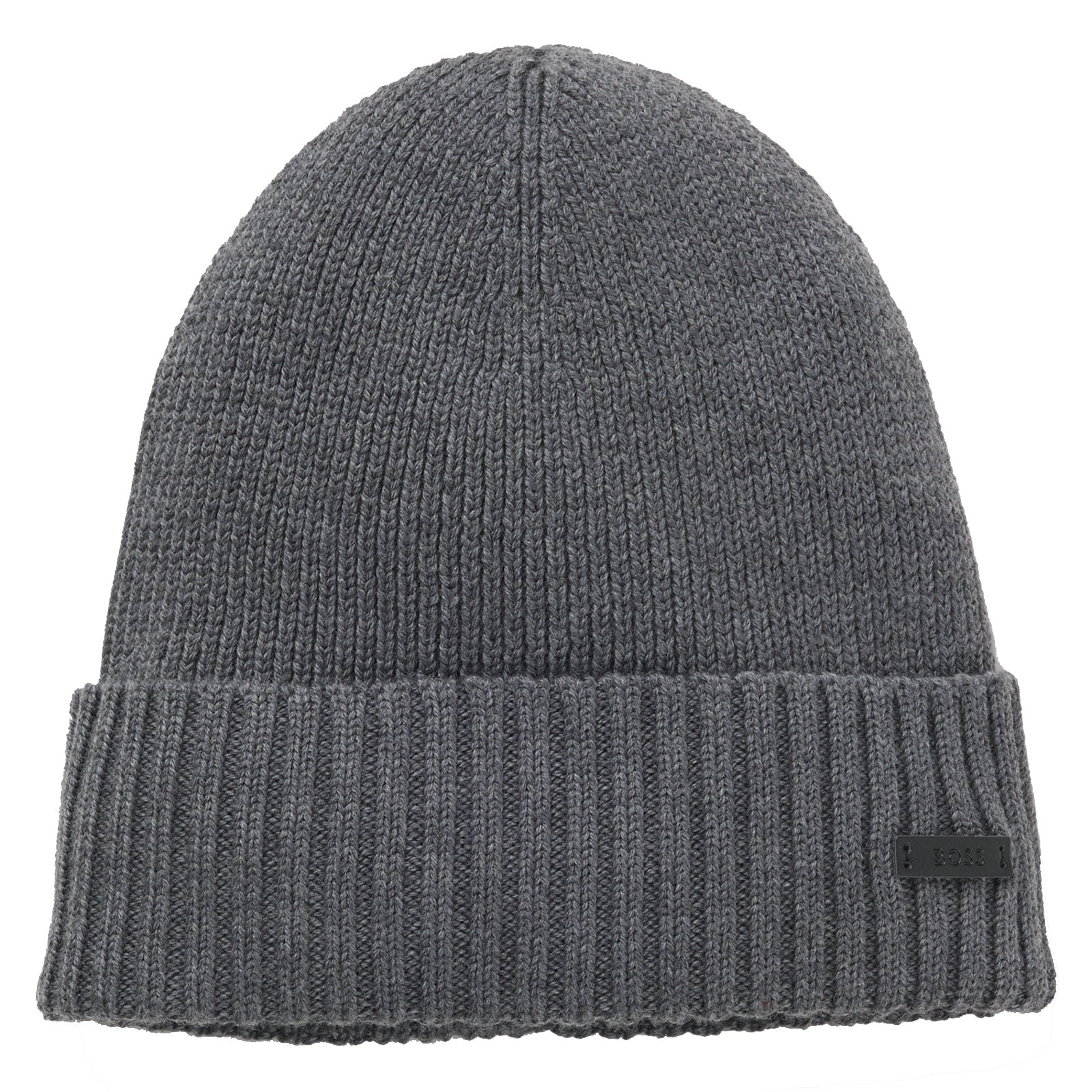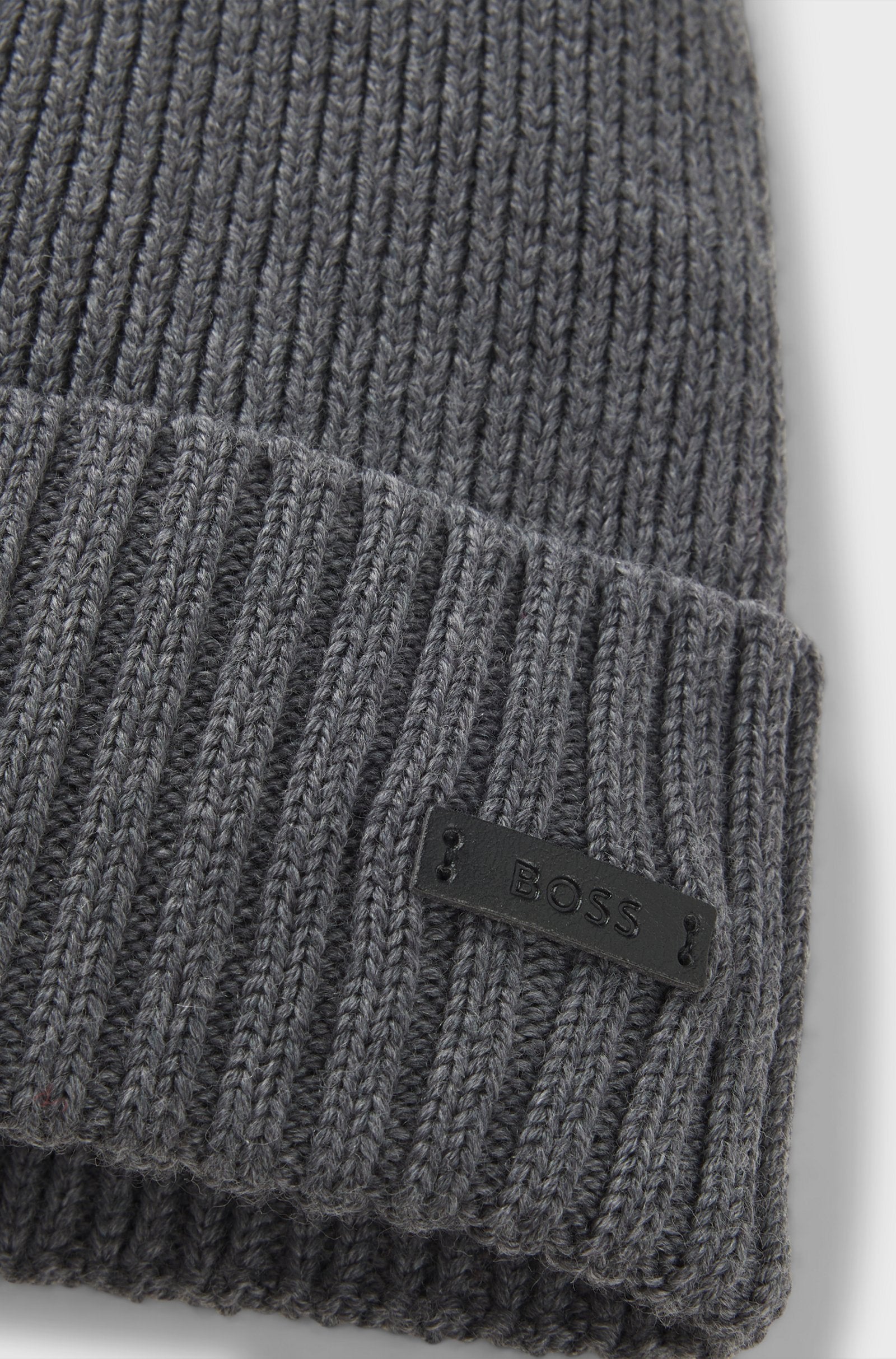 Boss Beanie hat in virgin wool with logo plaque - Grey
