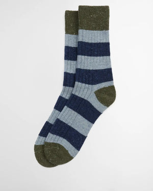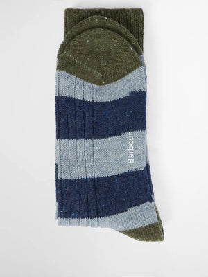 The Barbour Houghton Stripe socks are crafted in a luxury wool-blend and feature a wide striped design. Boasting a contrast heel and toe, these socks are finished with a printed Barbour logo to the sole of the foot.