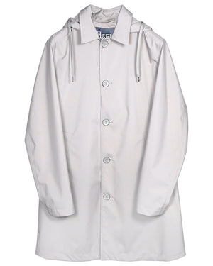 Experience ultimate comfort and style with the expertly crafted Herno Woven Hooded Raincoat. Made with lightweight and stretchy materials, it features a modern design adorned with Herno buttons and a hood for unexpected rain. Expertly crafted in Italy with a classic collar, long sleeves, and button closures, this raincoat exudes luxury and elegance.
