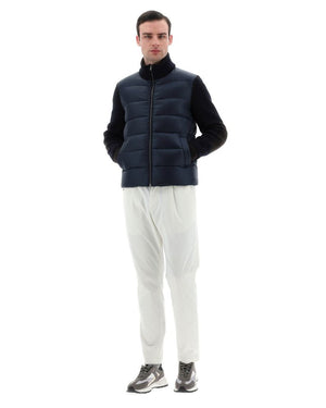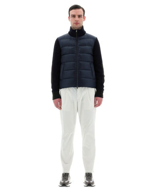 Its high collar and sleeves are trimmed in pure carded wool with a half fisherman's rib, offering an exquisite feeling against the skin.