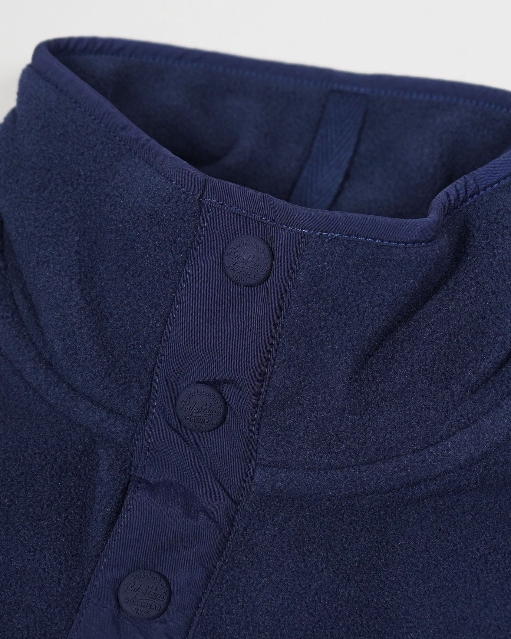 This pullover combines supersoft brushed fleece with custom-developed snaps for signature style.