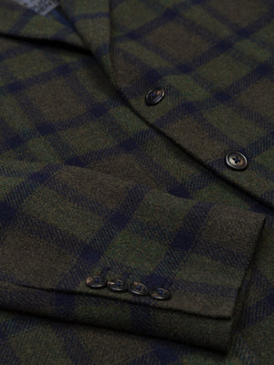 The Circolo 1901 Over Check Blazer in green is a stylish and sophisticated piece that is perfect for any formal occasion. Made from a luxurious blend of wool and cotton, this blazer features a classic check pattern in shades of green and brown. The notched lapels, two-button fastening, and flap pockets add a touch of elegance to the blazer, while the double vent at the back ensures a comfortable fit. The blazer is fully lined for added comfort and durability.