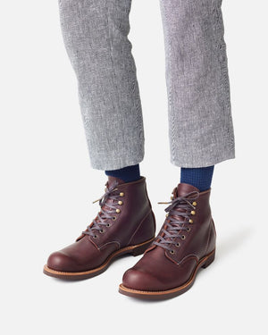 Men's 6-Inch Boot in Briar Oil-Slick Leather. The Blacksmith is a boot beloved for its highly wearable, everyday versatility. A sleek, smooth toe leads the way and solid hardware adorned with flat waxed laces are as every bit durable as they are dignified.