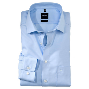 The Olymp Modern Fit Luxor Olymp shirt is is non-iron comfort fitting executed in 100% cotton.An essential shirt for every mans wardrobe. Italian style collar and single cuff and pocket.