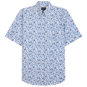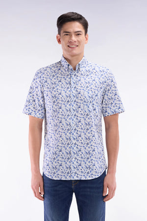 This short-sleeved shirt made of soft and lightweight cotton poplin stands out with its vegetal print, reminiscent of watercolor brushstrokes in shades of blue. Elegant and airy, this shirt adds an artistic and summery touch to the men’s wardrobe.