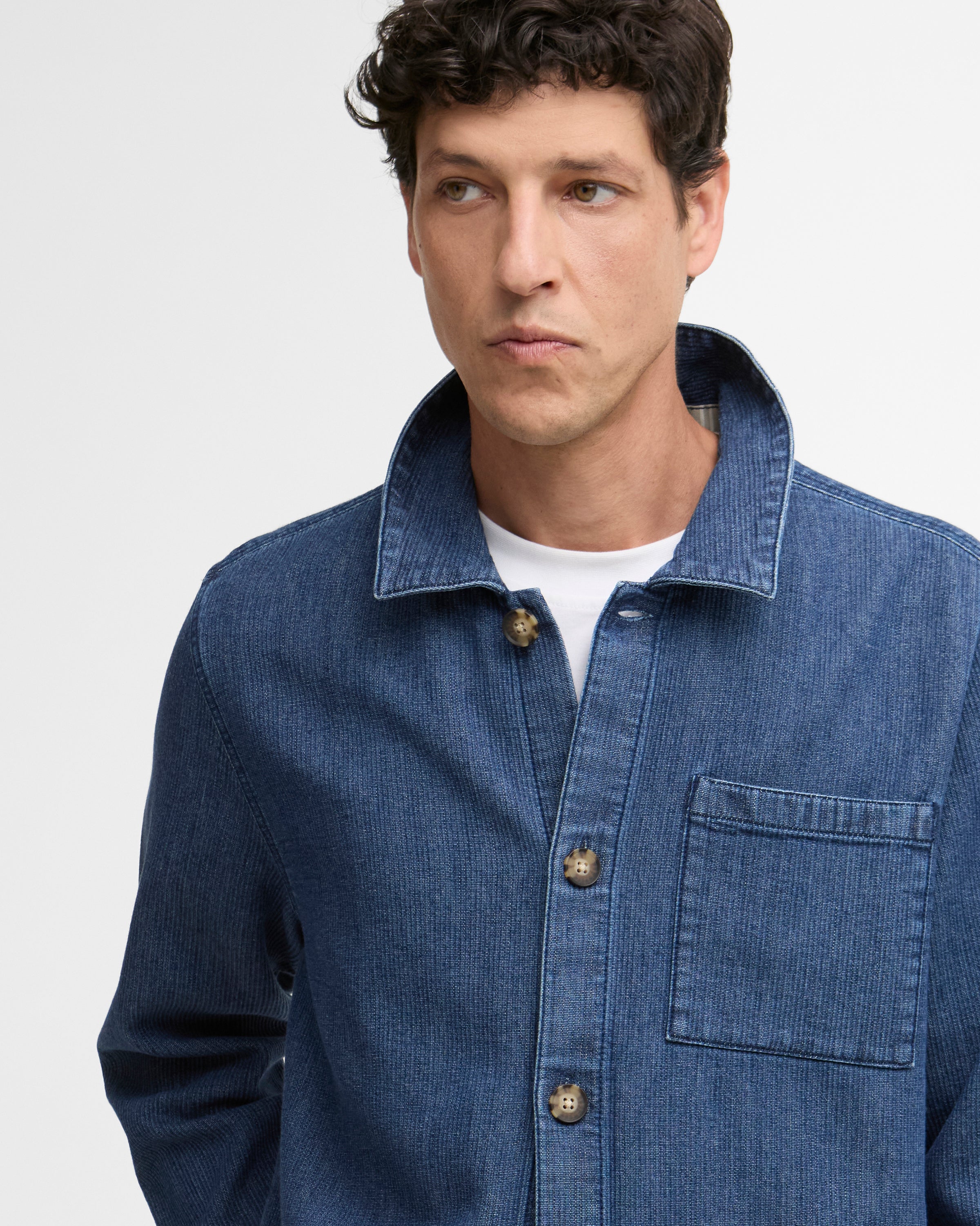 The Barbour Aickmen Textured Denim Overshirt is a versatile overshirt designed for layered style. Crafted from textured denim, it features a button-through front, a chest patch pocket, and side-entry welt pockets for practicality. Finished with a seasonal tartan trim at the inner collar, this shirt combines classic Barbour detailing with modern utility, making it a perfect everyday layering piece with heritage-inspired appeal.