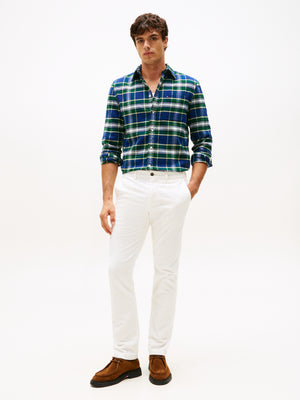 The Tommy Hilfiger Hero Flannel Tartan Shirt in green combines classic style with modern casual comfort. Featuring a distinctive blue, yellow, and green large check pattern, this shirt stands out with the iconic Tommy Hilfiger flag embroidered on the chest. Its button-down collar adds a refined touch, making it versatile for both relaxed and semi-formal occasions. Crafted from soft flannel, it ensures warmth and durability without compromising breathability. Perfect for layering or wearing on its own, this tartan shirt elevates everyday dressing with its timeless design and quality construction.HERO FLANNEL TARTN C 0N5