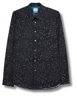 Paul Smith MENS Long sleeved casual TAILORED FIT SHIRT with all over print in dark navy. 97% Cotton and 3% Elastane A sleek, tailored fit perfect for any occasion. Crafted from a modern, cotton blend fabric with a hint of elastane for added stretch and comfort.