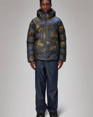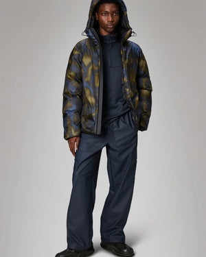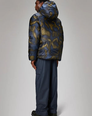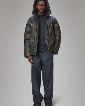 For the Kevo series, Rains flips the classic puffer look. On the outside, find a semi-transparent loose layer of nylon-ripstop revealing puffer chambers on the inside. The style features slip in pockets in sideseam and technical jersey storm cuffs. Topped by an insulated hood. Elasticated string adjustment is featured at the hem and hood.This jacket is designed with a soft matte finish. Cut from durable and waterproof nylon-ripstop, keeping you winter-ready and protected from cold, windchill and moderate rainfall.