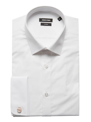 Look your best in this Remus Uomo Tapered Fit French Cuff Shirt. It features a blend of cotton and polyester for a comfortable fit with a tapered design. Double cuff and white buttons complete the classic look. Perfect for special occasions or simply dressing up.