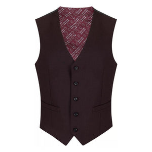 Dark red tapered fit wool blend stretch mix and match suit waistcoat with semi-plain remus tapered suit