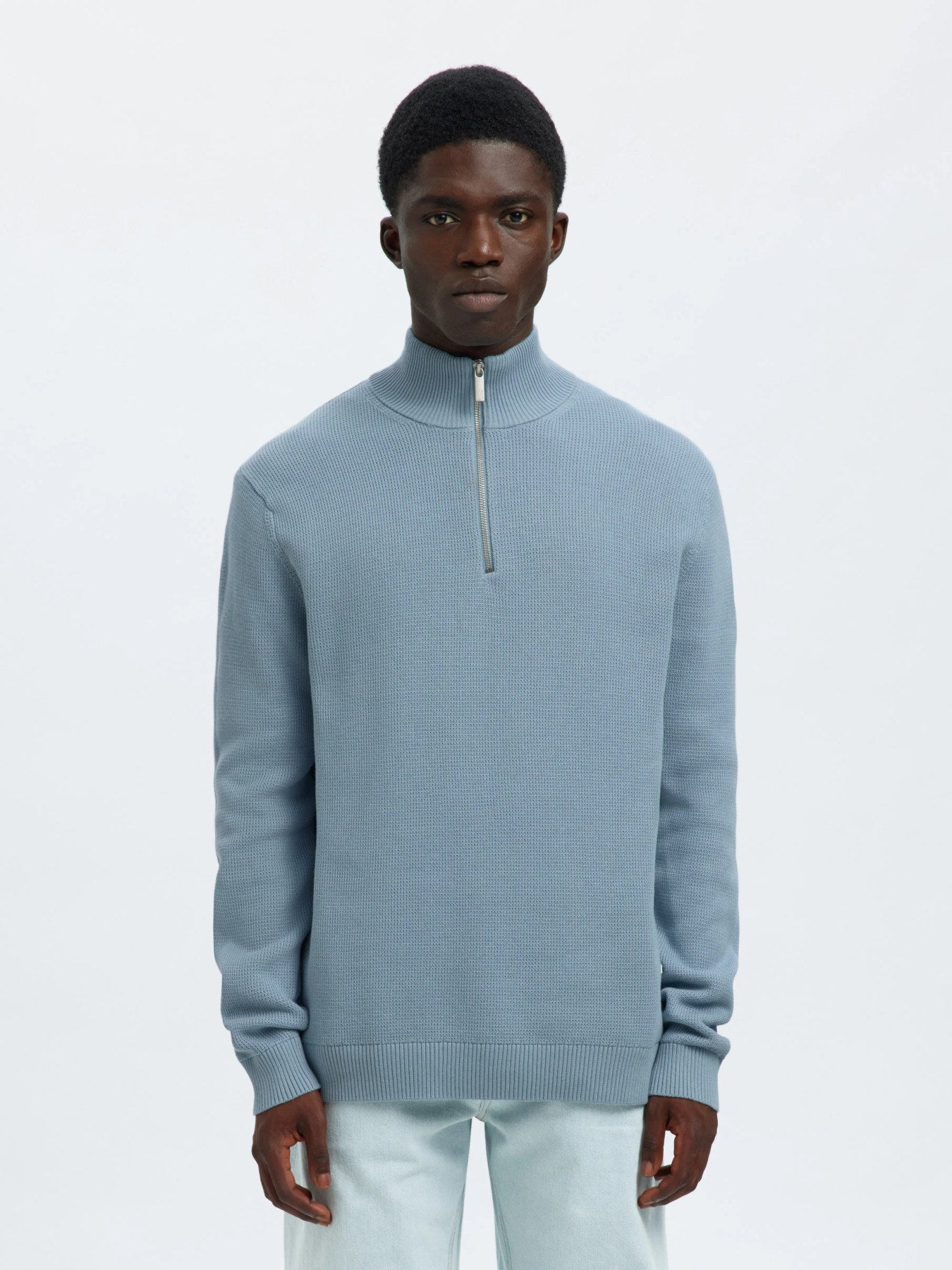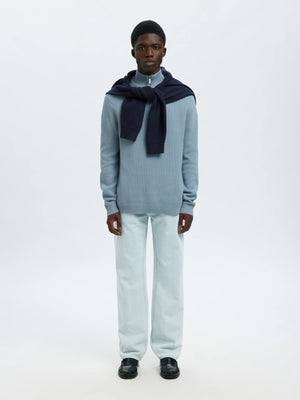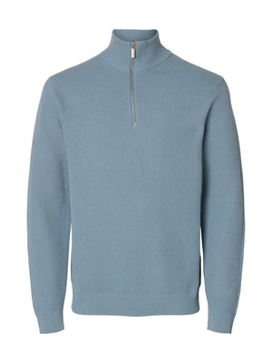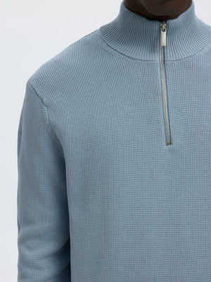 SLMDANE LS KNIT STRUCTURE HALF ZIP NOOS-Dusty Blue 16092601