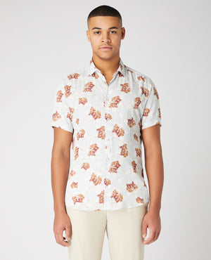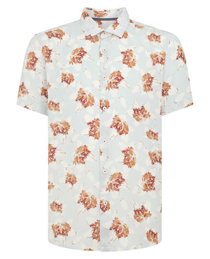 Remus Uomo Tapered Fit Leaf Print Shirt - Light Blue