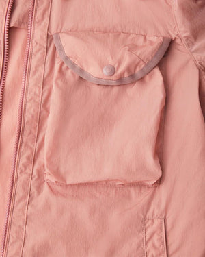 The Quarter Overshirt in Rust Pink. A lightweight, unlined jacket that offers protection from the rain while being easy to pack and take wherever you go.