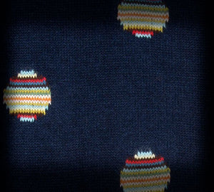 Men's navy socks with a 'Signature Stripe' polka dot pattern. Made in Italy from a high quality mercerised organically grown cotton-blend for increased resistance and added colour depth. These socks are finished with a ribbed cuff and hand linked toes for extra comfort.