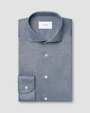 A lightweight and comfortable knit shirt with an elegant Oxford texture. The fabric is knitted from Filo di Scozia cotton by experts in Northern Italy who specialize in fine yarn knits. To create the unique texture of this beautiful fabric, the craftspeople use both white and colored yarns, giving the fabric and exquisite depth and texture. This shirt comes in soft spring colors – ideal for business casual looks – and it can easily be combined with overshirts or fine knitwear.