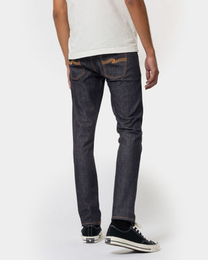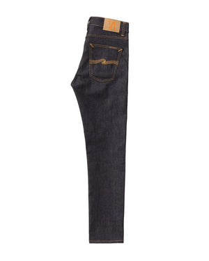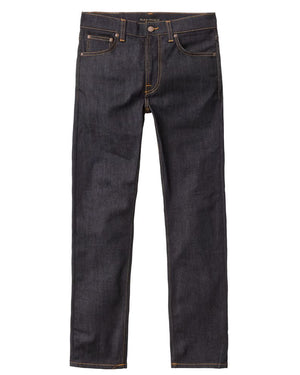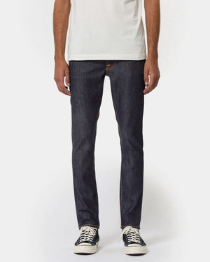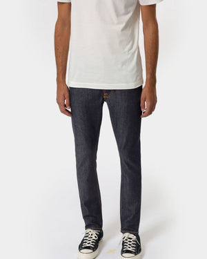 Jeans with a slim tapered fit made in organic comfort stretch denim. It tapers evenly from the hip down to the ankle, an aspect that has made Lean Dean one of our most popular fits. Jeans made in comfort stretch denim. Like the name implies, this dry, deep blue, option has been through 16 indigo dips. Unlike other stretch denim, these are not rinsed, so they are stiffer, and will shrink a bit more. Account for inseam shrinkage of 2% and 4.5-6% in width. Thus, sizing down is not recommended.