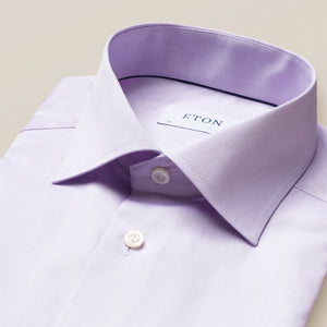 The Eton Contemporary Fit Signature Twill Shirt in Lavender is a stylish and elegant addition to any formal wardrobe. The lavender color gives this shirt a unique and sophisticated look, making it a great choice for formal occasions such as weddings, business meetings, and other formal events. Pair it with a navy suit and a complementary tie for a polished and professional look.