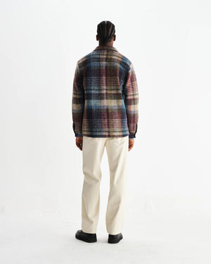 The Wax signature piece. The Whiting, our year-round staple, returns in a new large scale blue knitted brushed wool blend check design with hues of burgundy, brown, and grey. It features environmentally-friendly Corozo nut buttons and front patch pockets. Is it a shirt? Is it a mid-layer? Is it a jacket? It's all of those things and much, much more.