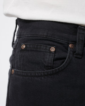 Regular-fit jeans featuring a straight-leg cut crafted from indigo-blue denim dyed black then lightly washed. Experience cold-blue black denim at its prime! The combination of the regular fit and classic black shade creates a classic, timeless look perfect for any occasion. It'll quickly become a go-to staple in your wardrobe. This fabric is both durable and comfortable enough for everyday wear, with traditional details like belt loops, five-pocket styling, and a button-fastening closure. Experience a daily look with a touch of sophistication that's sure to stay in style. he gentle wash has rendered structural wash effects and subtlely revealed the indigo underneath. This has resulted in a span of hues that range from pitch black to blueish dark grey. Murky blue-black jeans at its best!