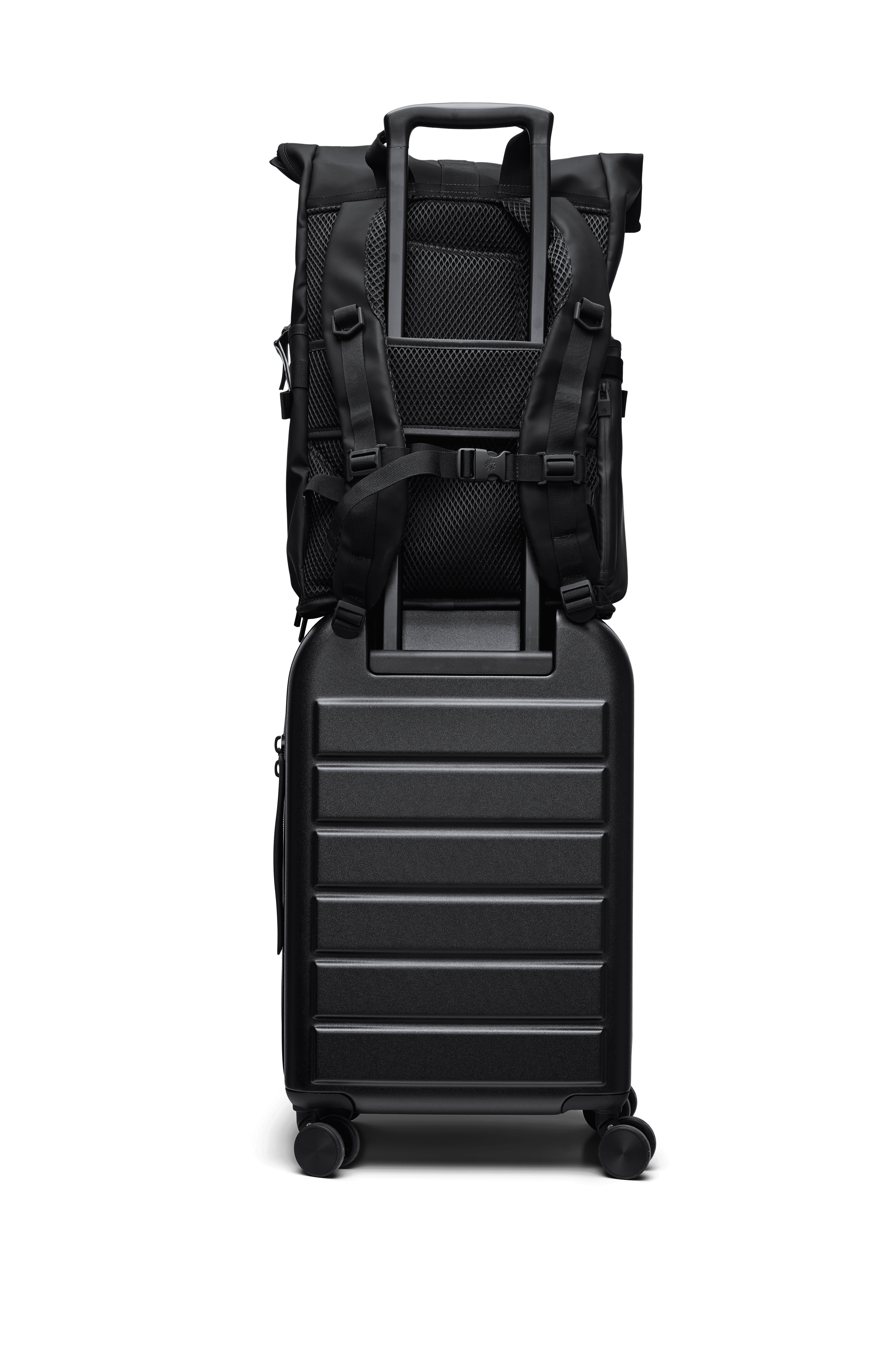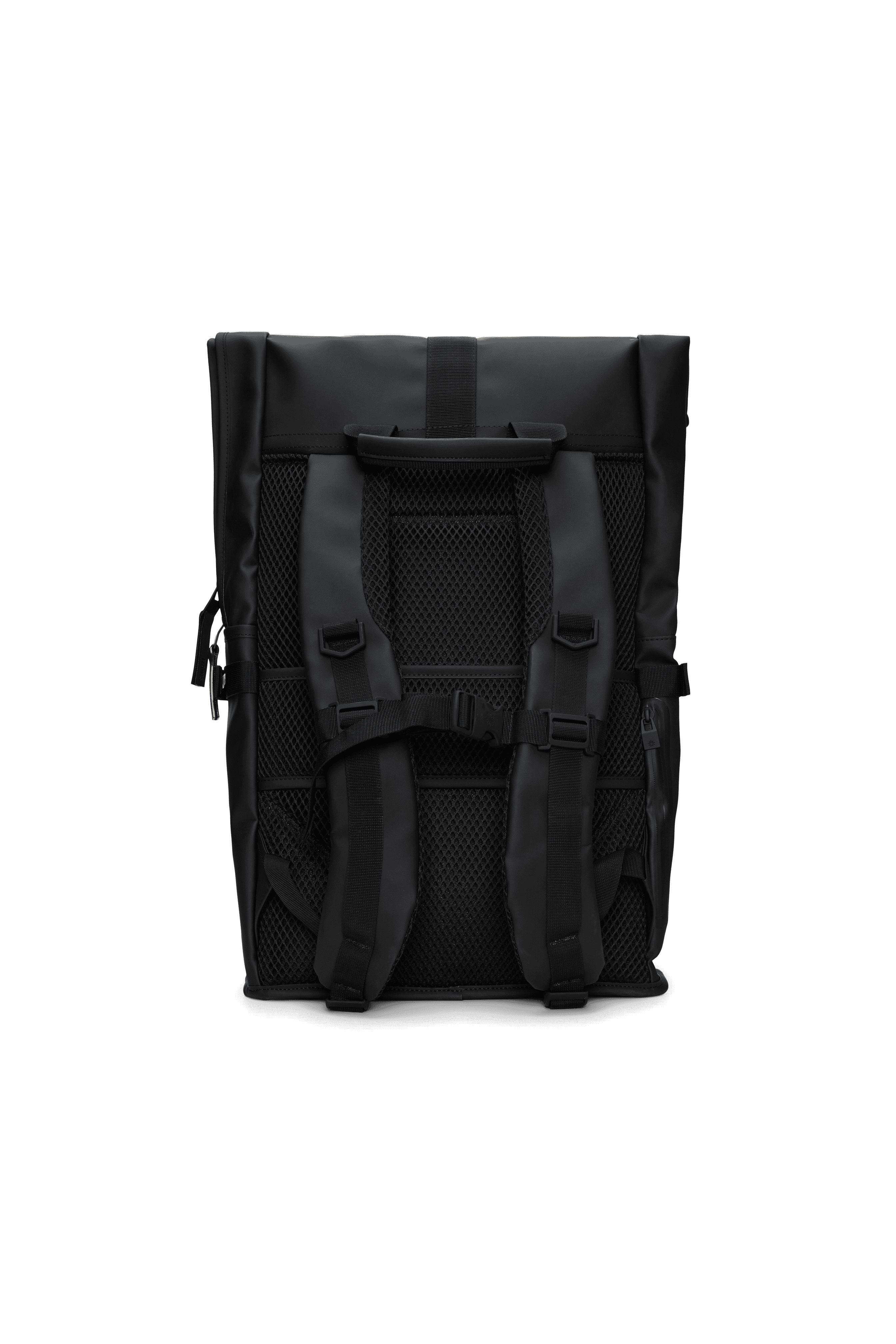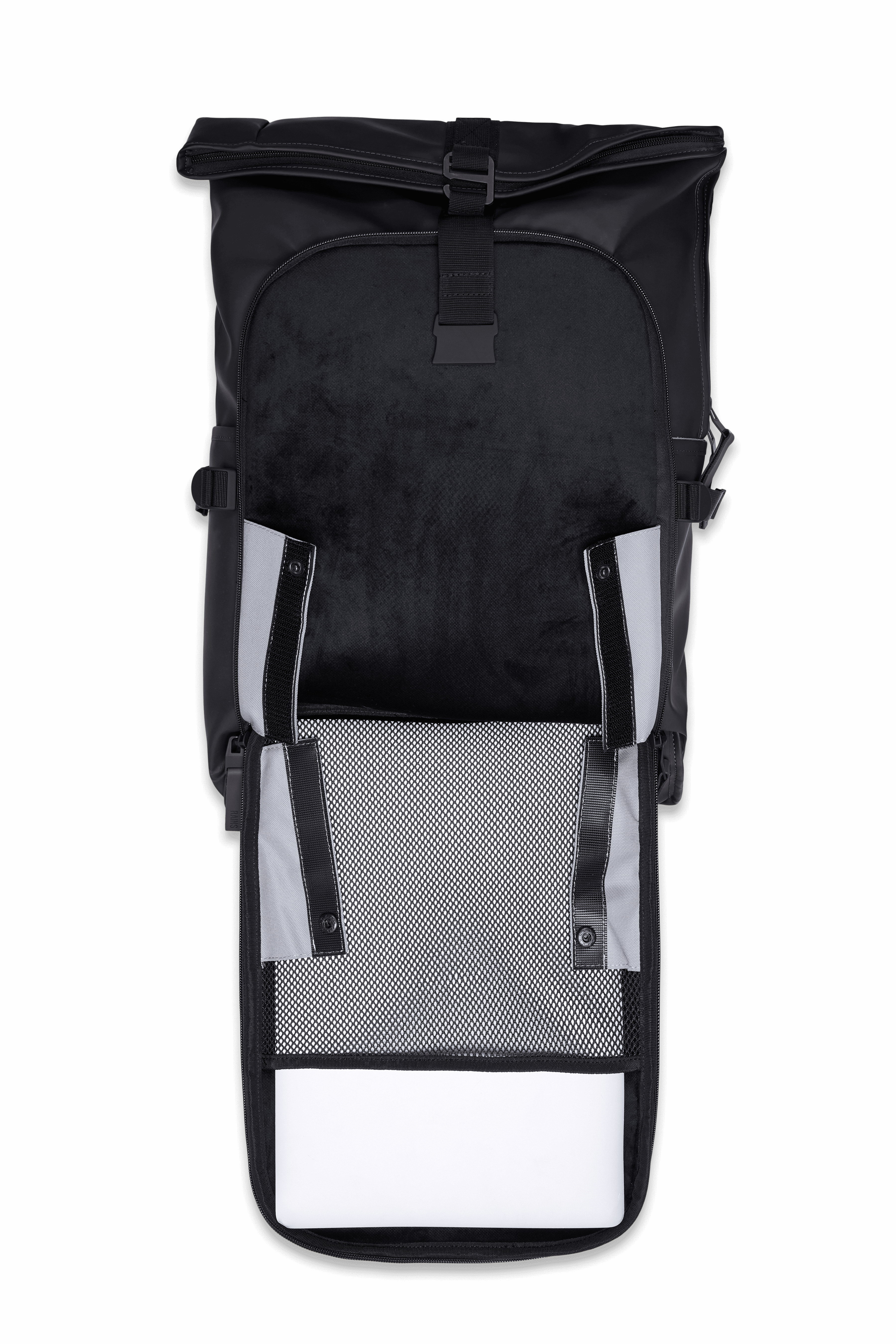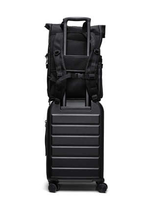 Texel Moulded Backpack features a trolley slip pocket making it slide seamlessly over telescopic trolley handles for easy transportation. Compression straps keep contents firmly in place. Texel Moulded Backpack is cut from Rains’ signature waterproof PU fabric, engineered for carrying strength, durability, and a smooth feel. Design is lined in our core grey colour to make finding and organizing easier even in dim light.