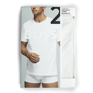 Boss 2 Pack White T-shirt. Experience the luxury and comfort of Boss with our 2-pack of premium white t-shirts. Made with the finest materials, these t-shirts are the epitome of tasteful and exclusive style. You'll feel like a true connoisseur when you step out in these must-have garments. Don't miss out on this elevated wardrobe essential.