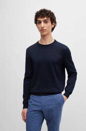 A versatile crew-neck sweater by BOSS Menswear. This easy-wear style is crafted in virgin wool and embroidered with a BOSS logo. This product is made with responsibly sourced wool. For us, responsibly sourced means mulesing free, and meeting the standards of the Five Freedoms of animal welfare.