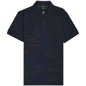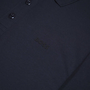 Stay stylish and comfortable with the Boss 'Paddy' Reflective Detail Polo Shirt in navy. Made with a cotton blend and stretch fabric, this polo shirt features a three button design, flat knit collar and cuffs, and BOSS branding on the left chest. Perfect for any casual or athletic occasion, this regular fit shirt offers both function and style.