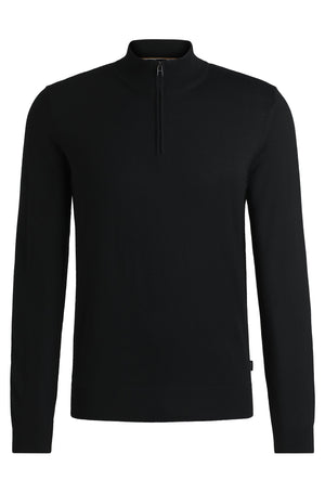 Boss Regular-Fit Zip-Neck Sweater in Virgin Wool - Black