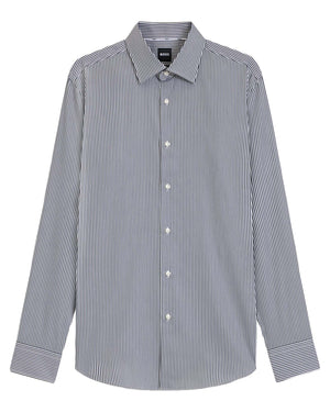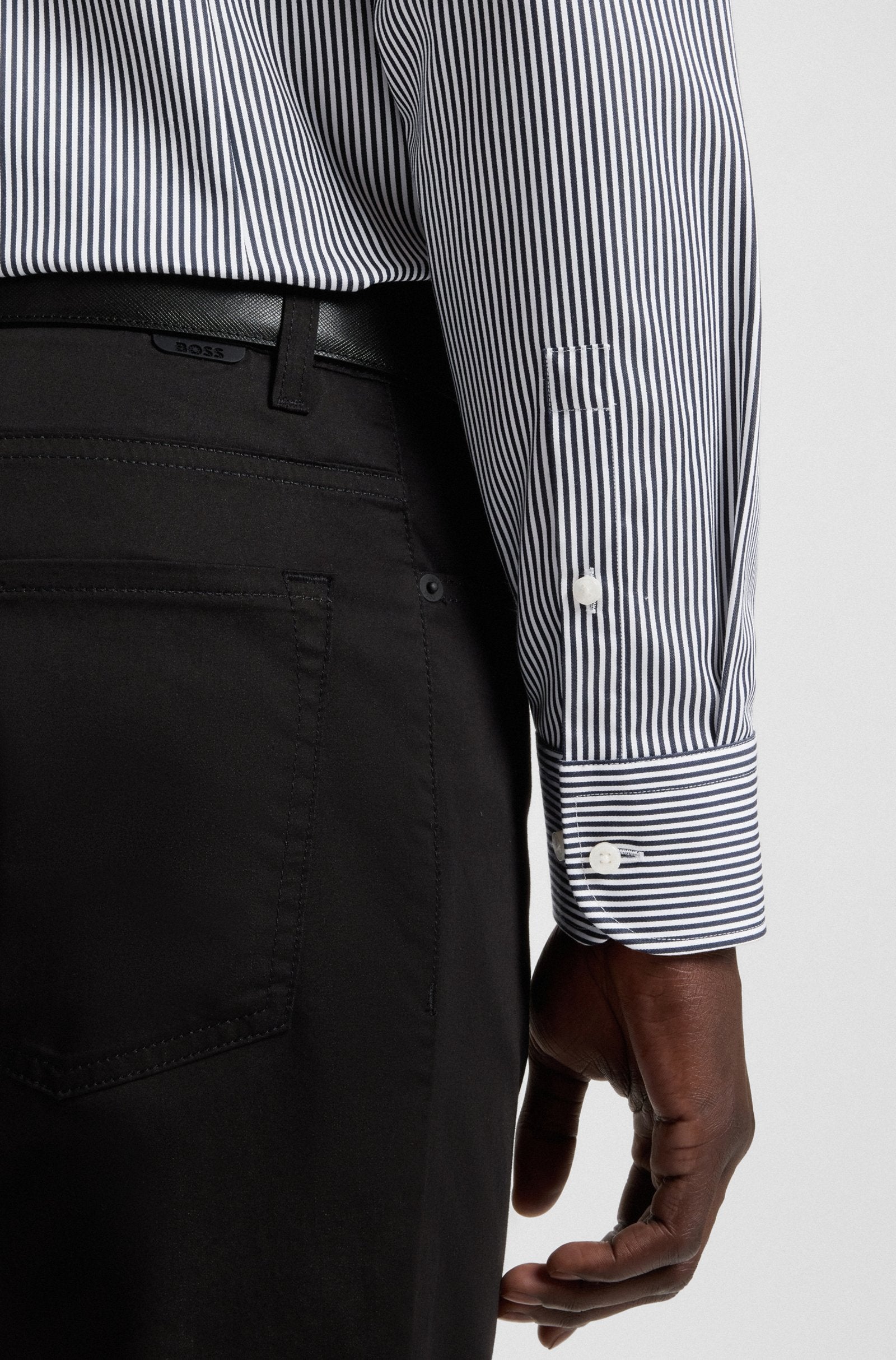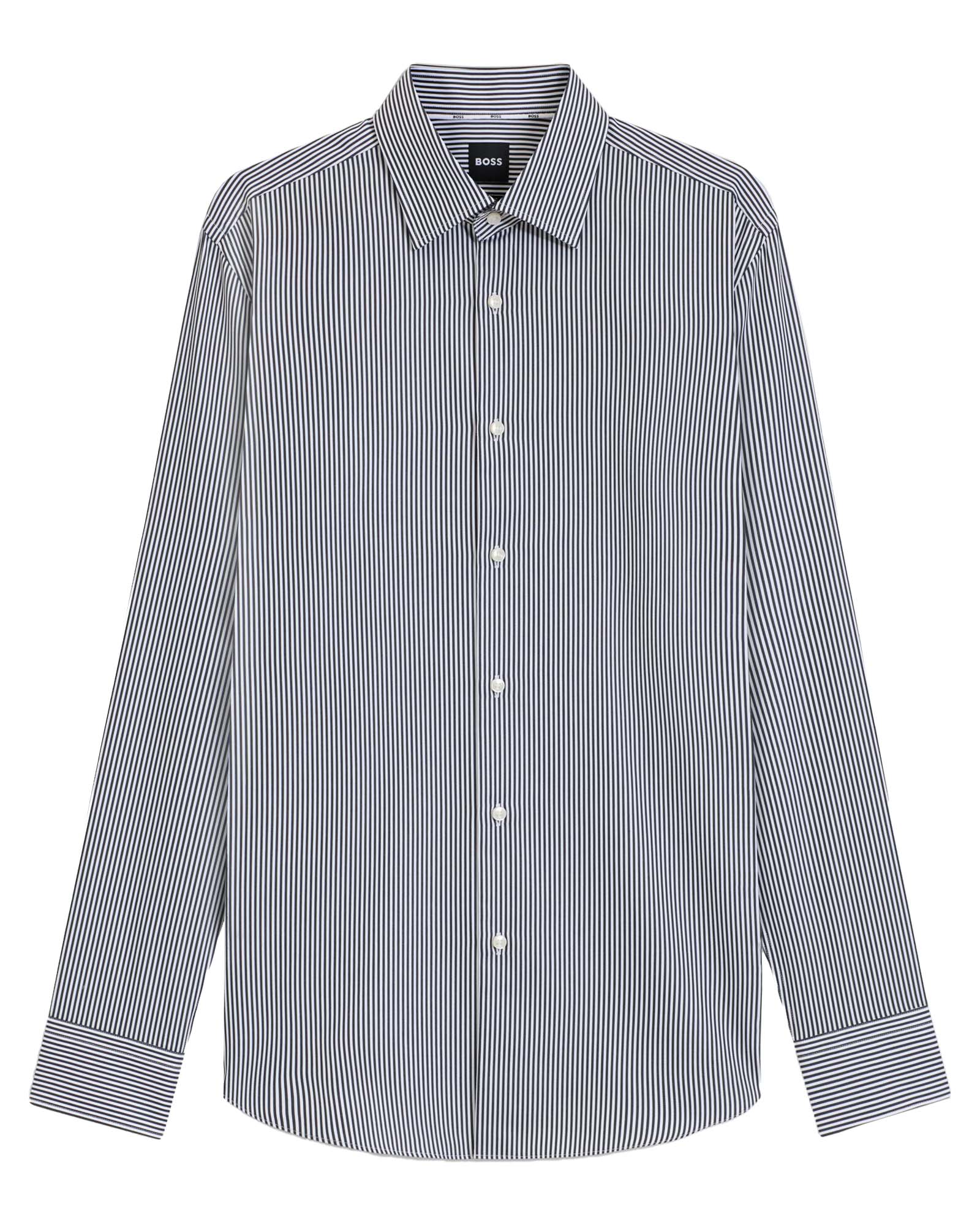 In extra-soft cotton satin that's easy to iron, this BOSS Menswear shirt is a must for busy days. Defined fit with a vertical stripe.
