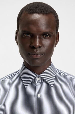 Slim-fit shirt in easy-iron striped cotton - Navy