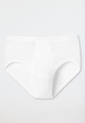 Underwear classic with fly: These white sport briefs from the SCHIESSER "Original Classics" line convince discriminating gentlemen with their high-quality material and optimal wearing comfort. 100% super combed cotton feels beautifully soft on the skin, and provides a perfect fit even after many 95 degree washes thanks to the SCHIESSER elastic band. An inherently stable, comfortable pair of mens briefs without any annoying side seams, in the best SCHIESSER quality!
