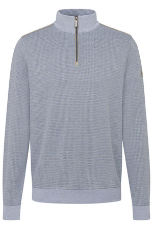 Introducing the Bugatti Half Zip Knit Sweatshirt in Blue. Made with a cotton mix, this half zip sweatshirt offers both comfort and style. Its high collar and contrast material collar add a touch of sophistication, while the contrast zip adds a pop of color. Perfect for any occasion, stay warm and stylish with Bugatti.