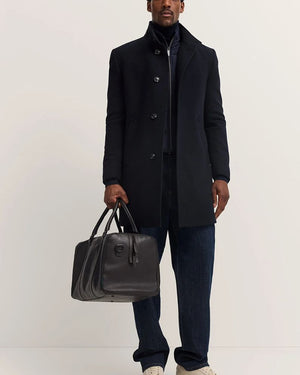 This premium wool coat, crafted from a refined blend of 55% wool, 40% polyester, and 5% other fibers, offers an exceptional balance of warmth, durability, and comfort. The natural wool provides excellent insulation and breathability, while the polyester enhances strength and resistance to wrinkles. Designed for the discerning wearer, this navy coat combines sophisticated style with practical performance, making it a versatile outerwear choice for cooler seasons. Its tailored construction ensures a refined silhouette that complements any formal or smart-casual wardrobe. Ideal for those seeking quality and longevity in their wardrobe investment.
