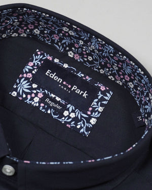 Stay stylish and comfortable with the Eden Park Long Sleeved Button Down Collar Shirt in navy. Made from 100% cotton, it features a contrast inner collar with a floral design, front pocket, and the iconic Eden Park bow logo. The regular fit ensures a classic and flattering look.